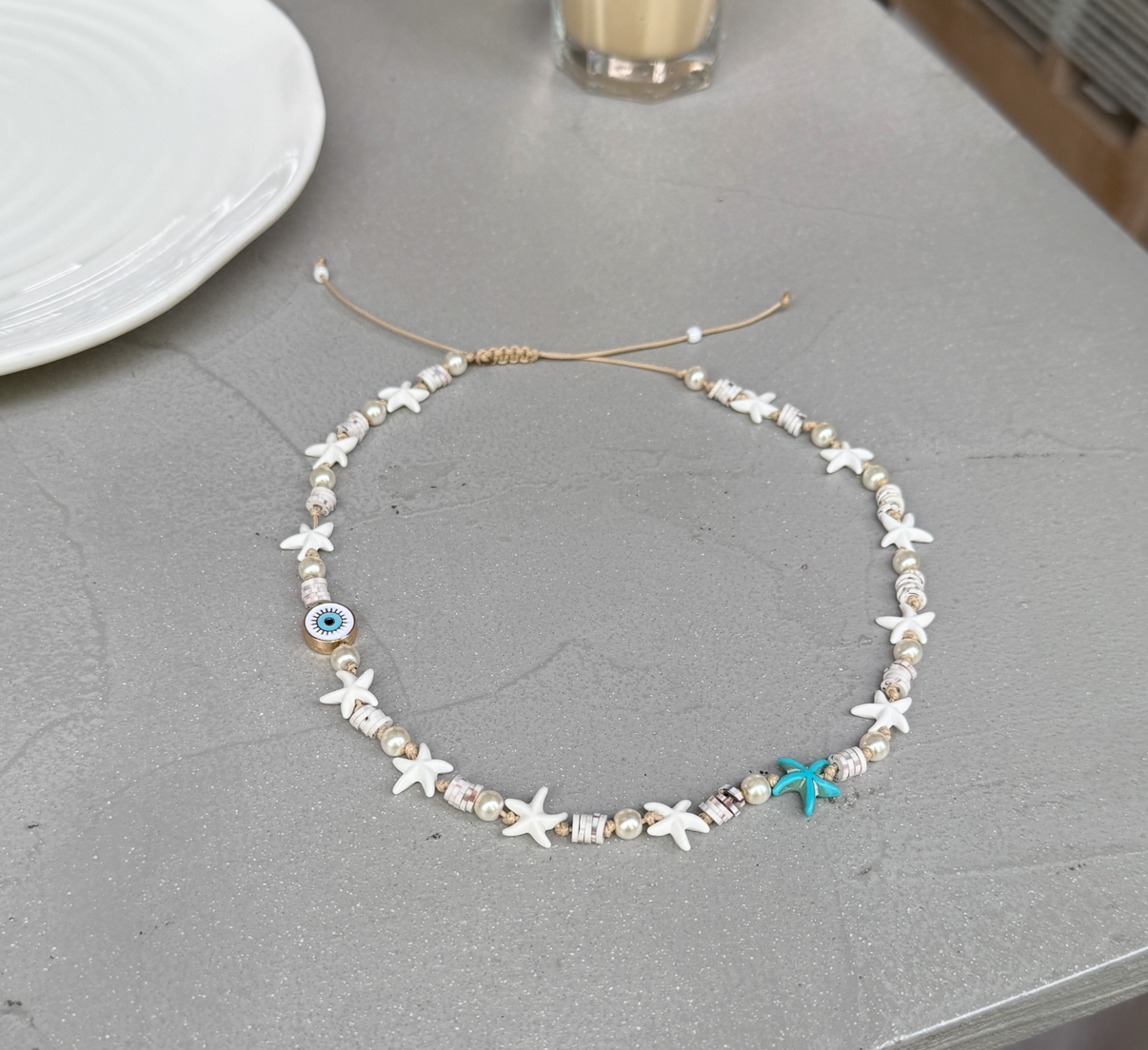 گردنبند صدف و ستاره دریایی و چشم نظر کد ۳