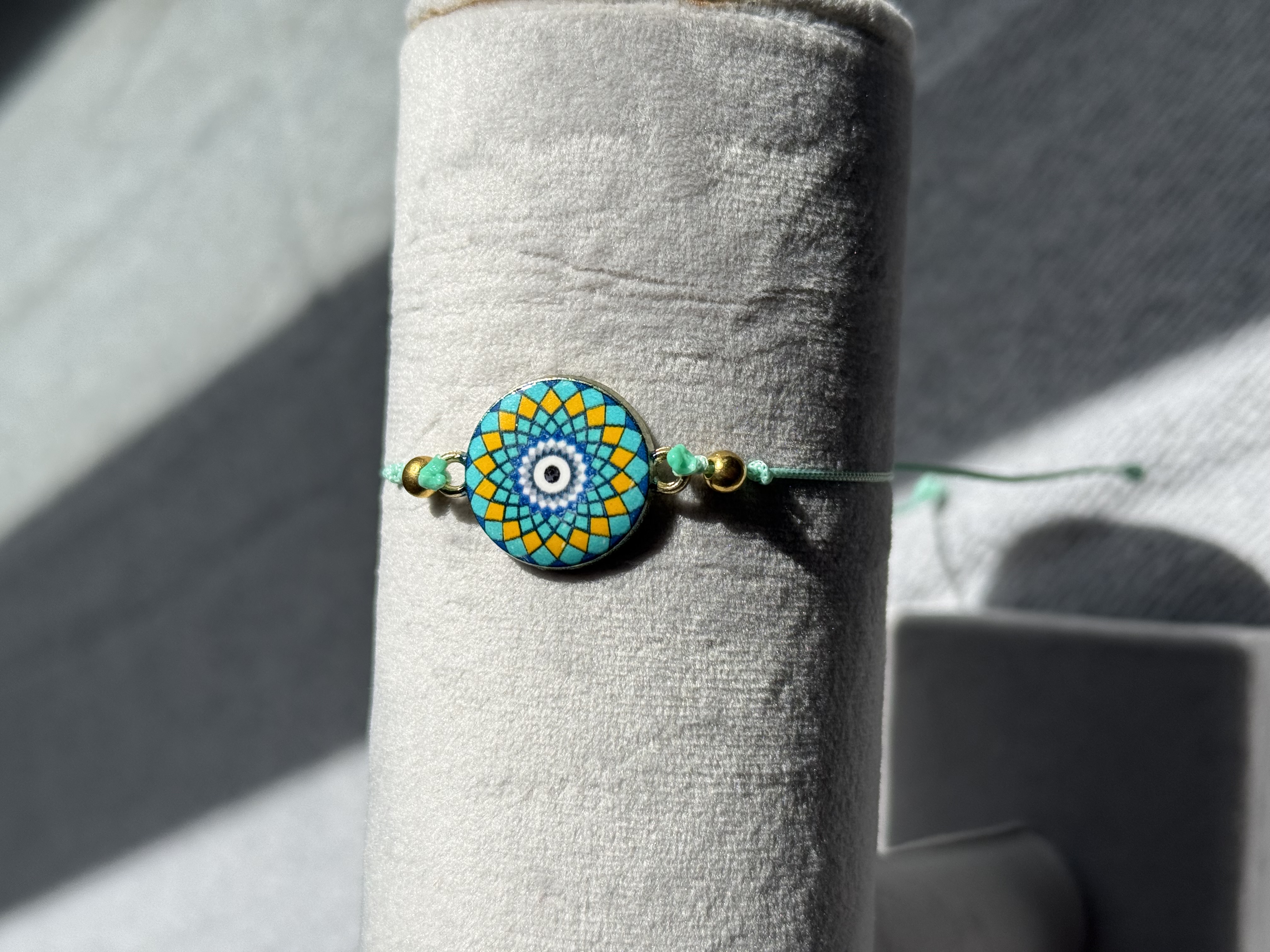 دستبند دستباف سبز فیروزه ای کد ۱۶