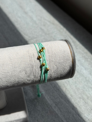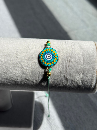 دستبند دستباف سبز فیروزه ای کد ۱۶