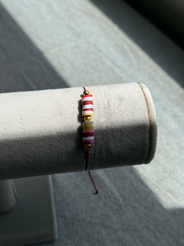 دستبند دستباف پلاک شکوفه سفید کد ۴۰