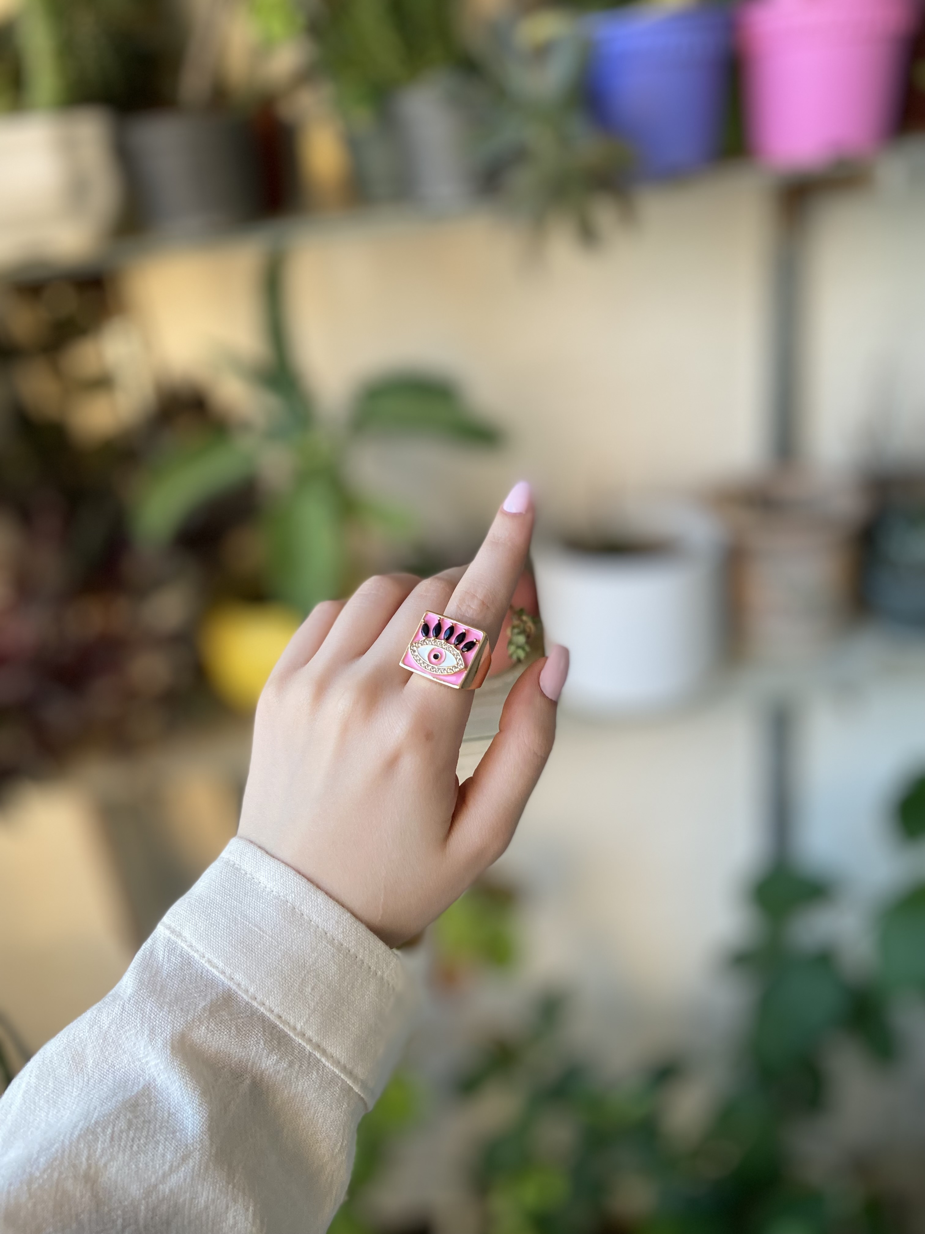 انگشتر طلایی مینا کاری رنگی فری سایز