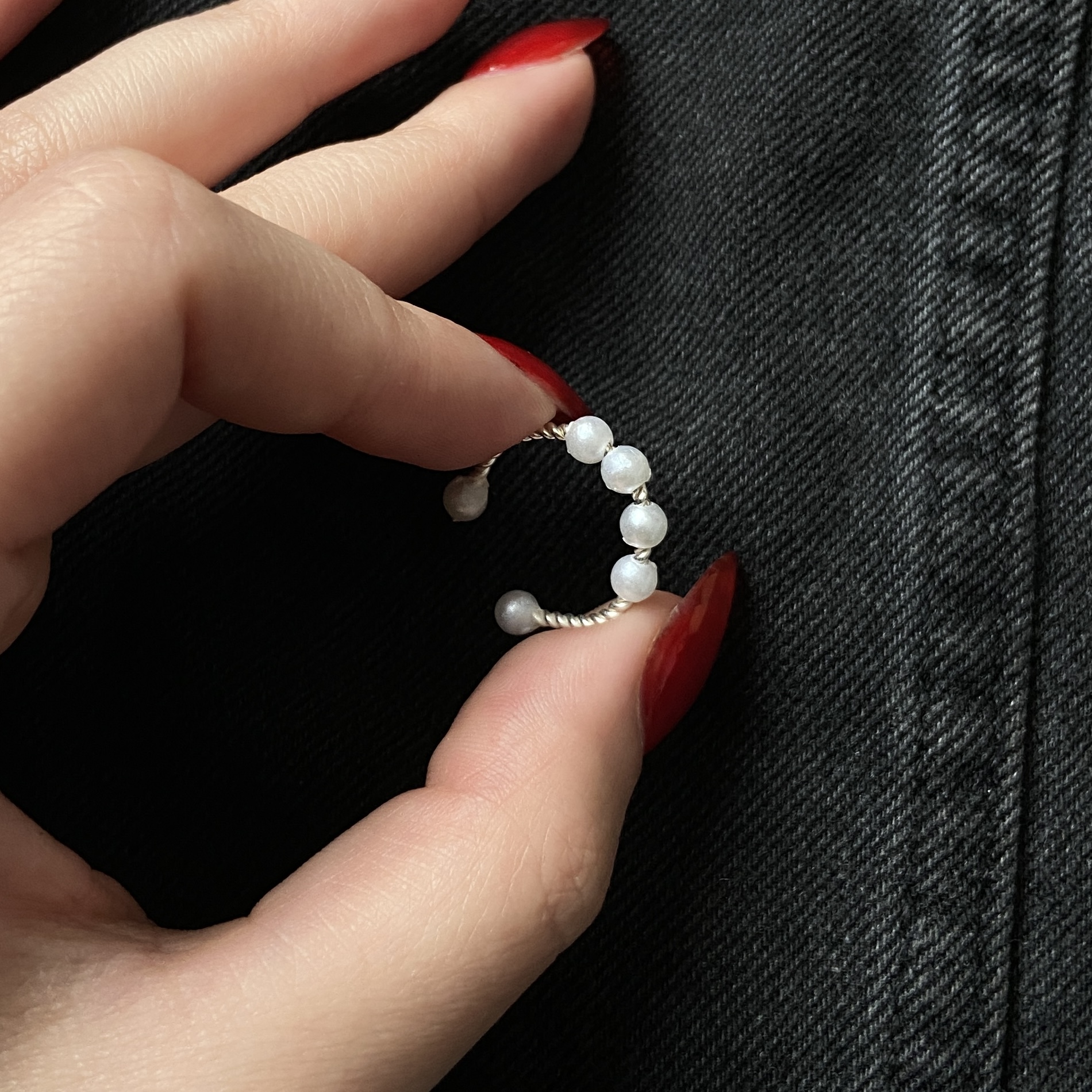 این انگشتر زیبا با طراحی خاص و وزن سبک، ترکیبی از ظرافت و آرامش است. مرواریدهای مصنوعی متحرک روی آن، علاوه بر جلوهای جذاب، به شما کمک میکنند استرس خود را کاهش دهید.