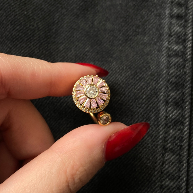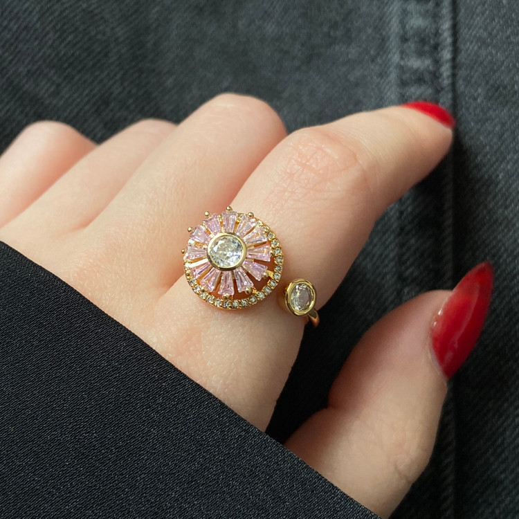 این انگشتر زیبا با طراحی مینیمال و ترکیب رنگ طلایی و صورتی، جلوهای ظریف و متفاوت به استایل شما میبخشد. مکانیزم چرخشی آن، بهترین همراه برای لحظاتی است که به آرامش نیاز دارید.
