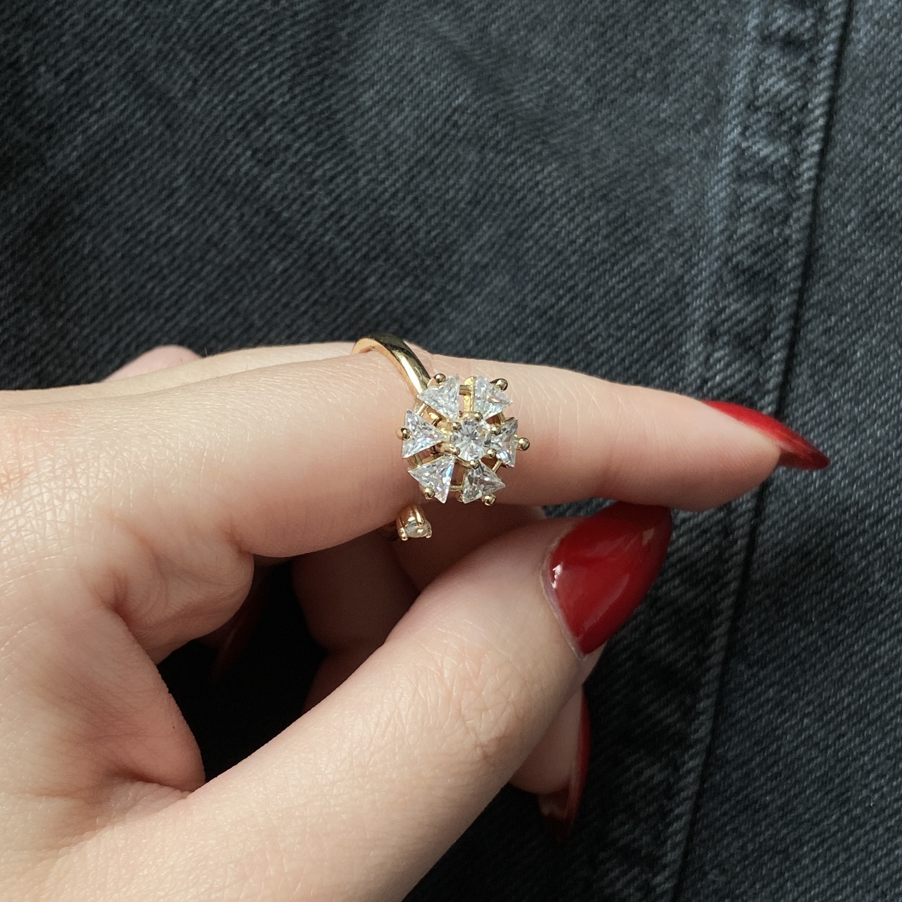 این انگشتر با طراحی مینیمال و رنگ طلایی درخشان، ترکیبی از زیبایی و کاربرد است. مکانیزم چرخشی آن به شما کمک میکند در لحظات پراسترس آرامش بیشتری داشته باشید.