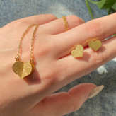 ست گوشواره و گردنبند طلایی قلب انتخابی عاشقانه و ظریف برای کسانیست که دوست دارند عشق و احساساتشان را در استایل خود نشان دهند.