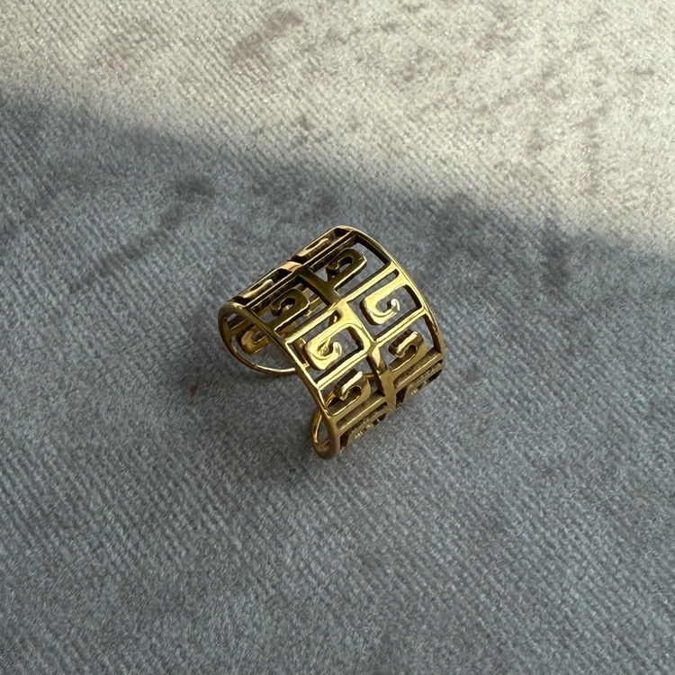 این انگشتر طلایی با طراحی الهامگرفته از سبک ورساچه، ترکیبی از لوکس بودن و مدرن بودن را به استایل شما اضافه میکند.