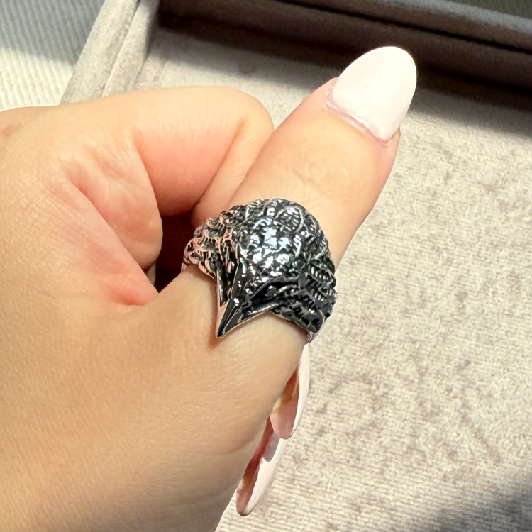 این انگشتر مردانه با طراحی نمادین عقاب و استفاده از تکنیک سیاهقلم (oxidized)، انتخابی قدرتمند و چشمگیر برای آقایانیه که به دنبال استایل خاص، نمادین و تأثیرگذار هستن.