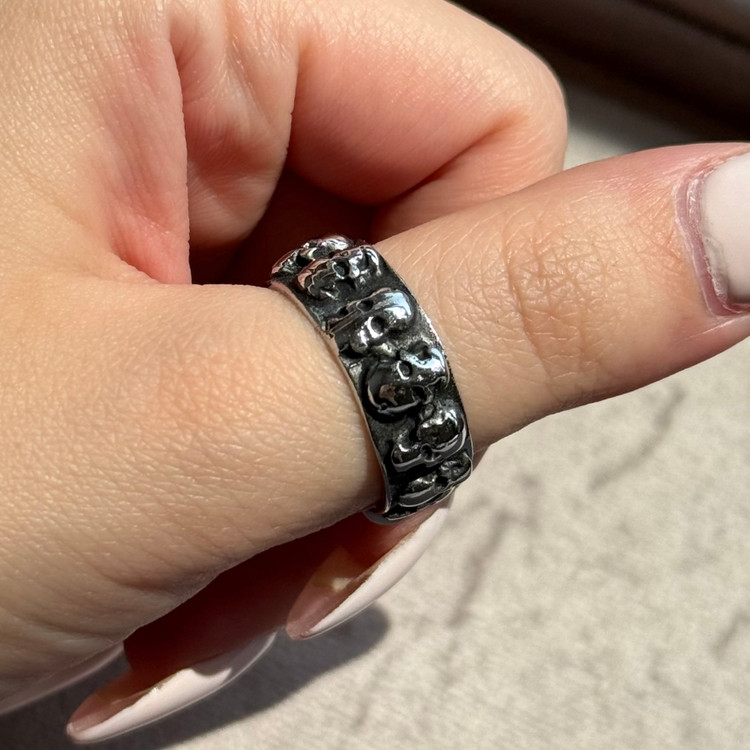 این انگشتر با طراحی اسکلت و جزئیات سیاهقلم، انتخابی خاص برای کسانیست که به استایلهای جسورانه و متفاوت علاقه دارند.