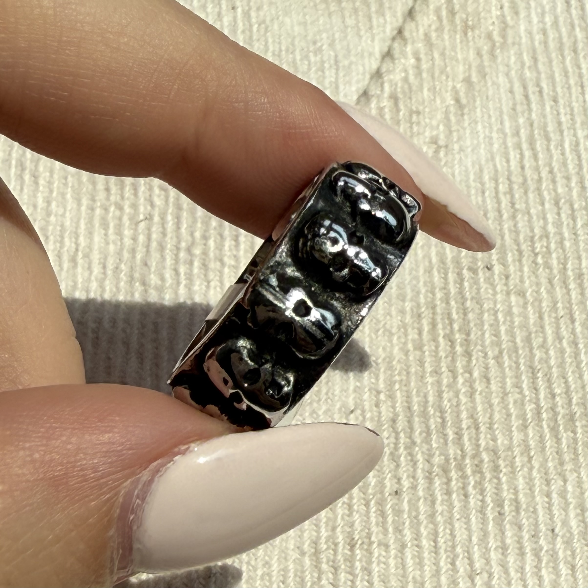 این انگشتر با طراحی اسکلت و جزئیات سیاهقلم، انتخابی خاص برای کسانیست که به استایلهای جسورانه و متفاوت علاقه دارند.