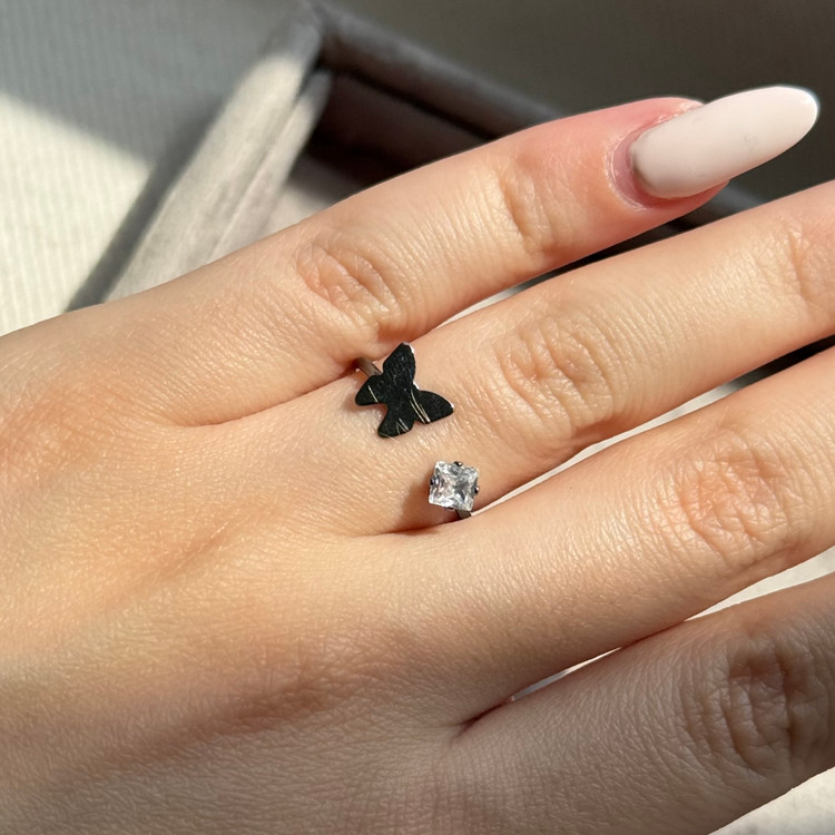 انگشتری با طراحی پروانه که نماد تغییر، زیبایی و رهایی است.