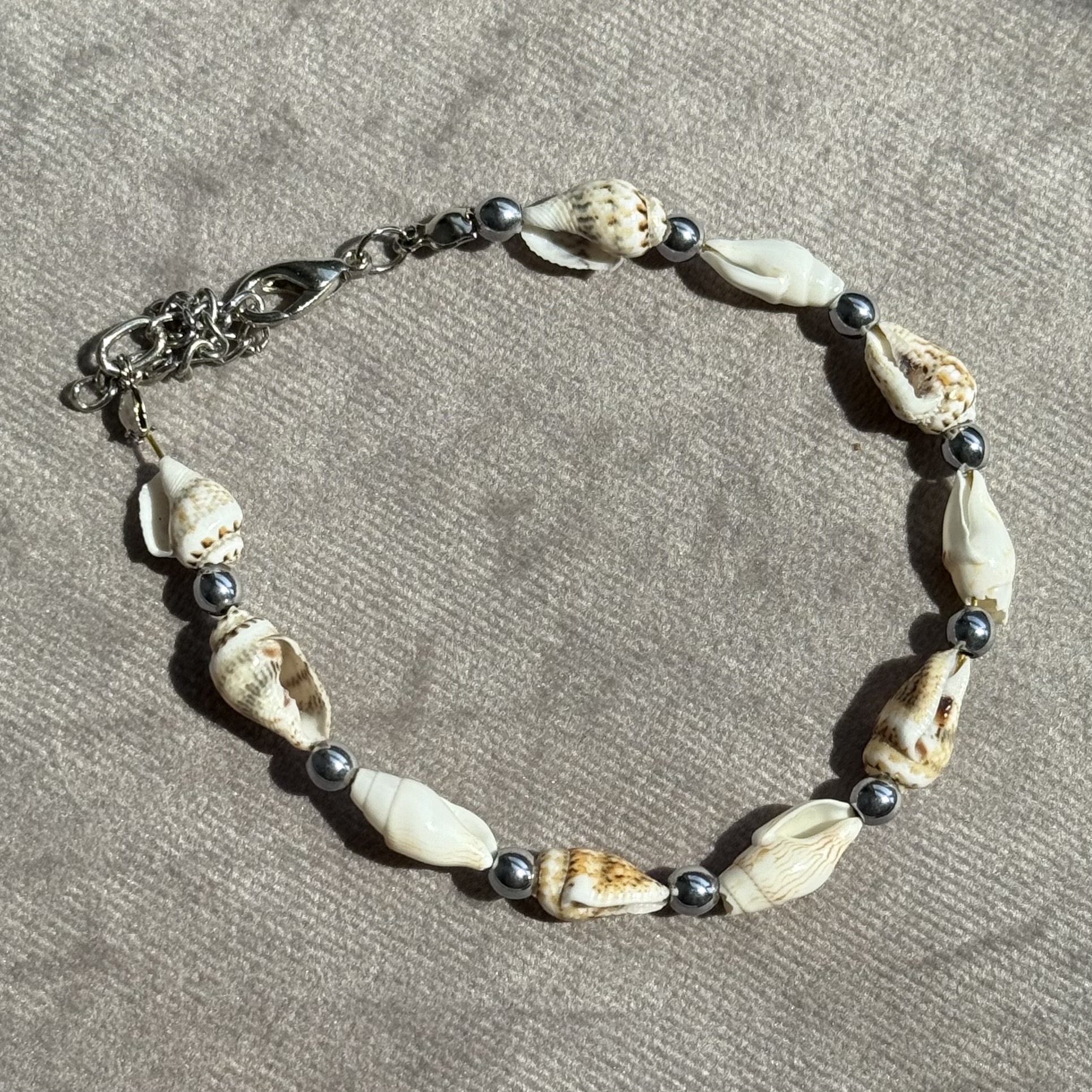 دستبندی با گوشماهی طبیعی که حالوهوای ساحل و دریا رو به استایلت میاره.