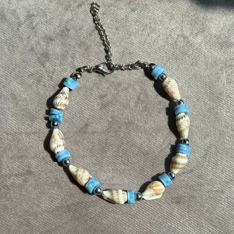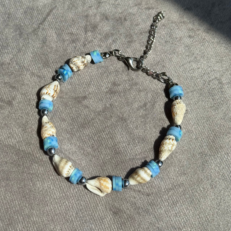 این دستبند با ترکیب گوشماهی طبیعی و مهرههای فیمو آبی، حس سرزندگی، دریا و طراوت تابستونی رو به استایلت اضافه میکنه.