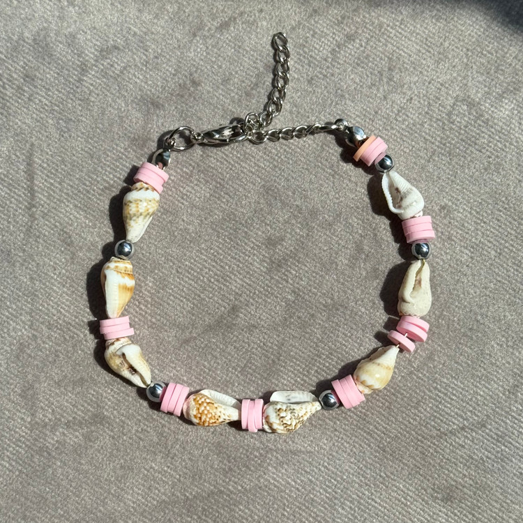 دستبندی با گوشماهی صورتی که ترکیبی از لطافت و حس ساحلی رو به استایلت میاره.