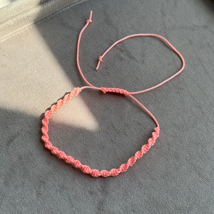 دستبند دستباف صورتی کد ۱۰ با رنگی آرام، لطیف و دوستداشتنی، انتخابی بینظیر برای افرادی است که به سادگی و ظرافت در استایل خود اهمیت میدهند. رنگ صورتی این دستبند، نماد عشق، مهربانی و آرامش است و بهزیبایی با هر رنگ لباس یا اکسسوری دیگری ست میشود.