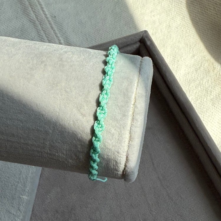 این دستبند با نخهای مقاوم و باکیفیت بهصورت کاملاً دستباف ساخته شده و بافت دقیق آن، هر قطعه را منحصربهفرد کرده است. طراحی ساده و ظریف آن باعث میشود بهتنهایی یا همراه با دیگر اکسسوریها، جلوهای جذاب و چشمگیر ایجاد کند.