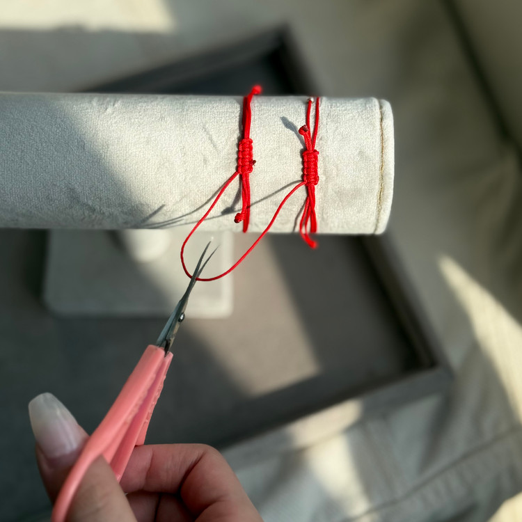 هر دستبند دارای بند قرمز با دو گوی متحرک است که نماد هر یک از دو نفر هستند؛ این گویها با حرکت خود نشان میدهند که افراد ممکن است از هم دور و نزدیک شوند، اما پیوندشان همیشه باقی میماند. زمانی که دستبند به دستتان رسید، خودتان با قیچی بند آن را قیچی میکنید و این عمل نماد تصمیم شخصی شما برای نگه داشتن پیوند و اتصال تا ابد است.