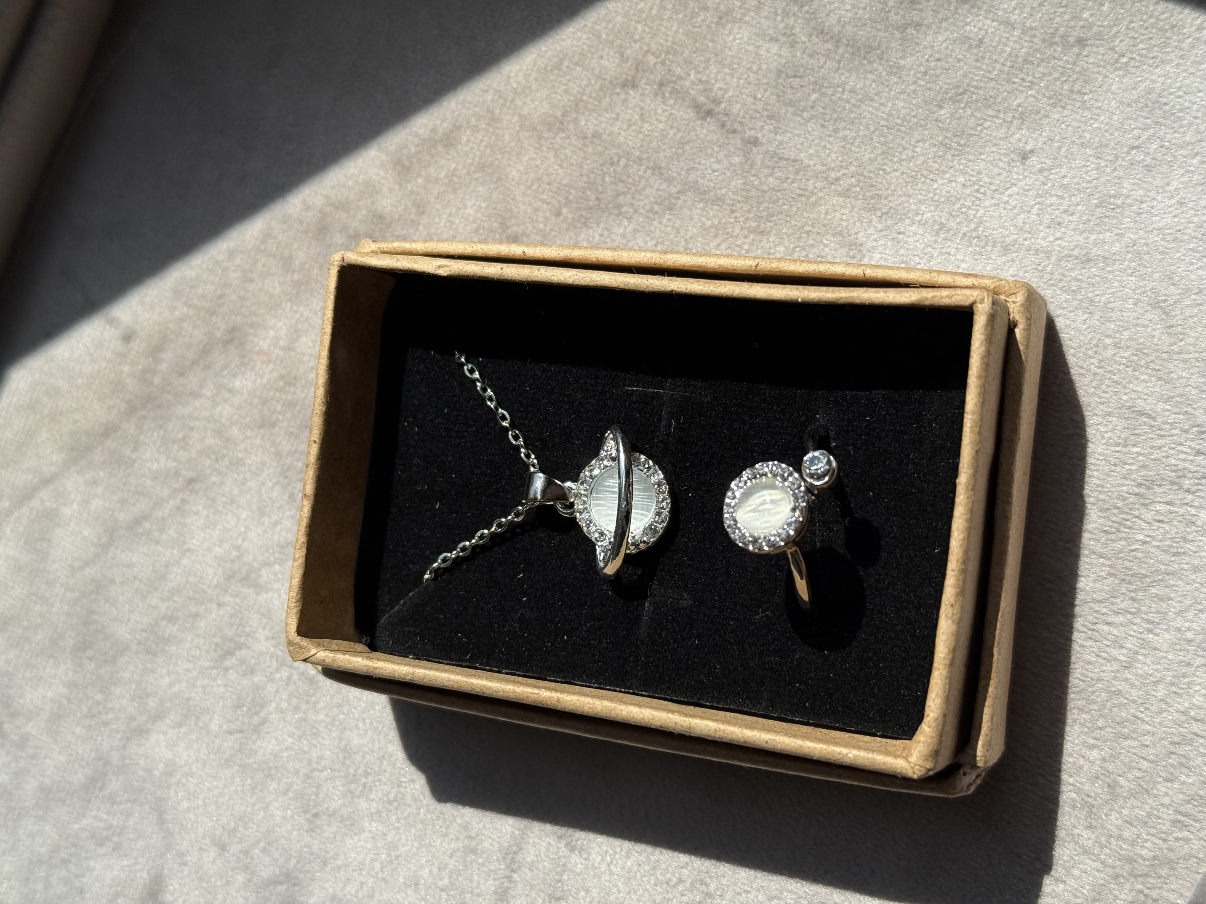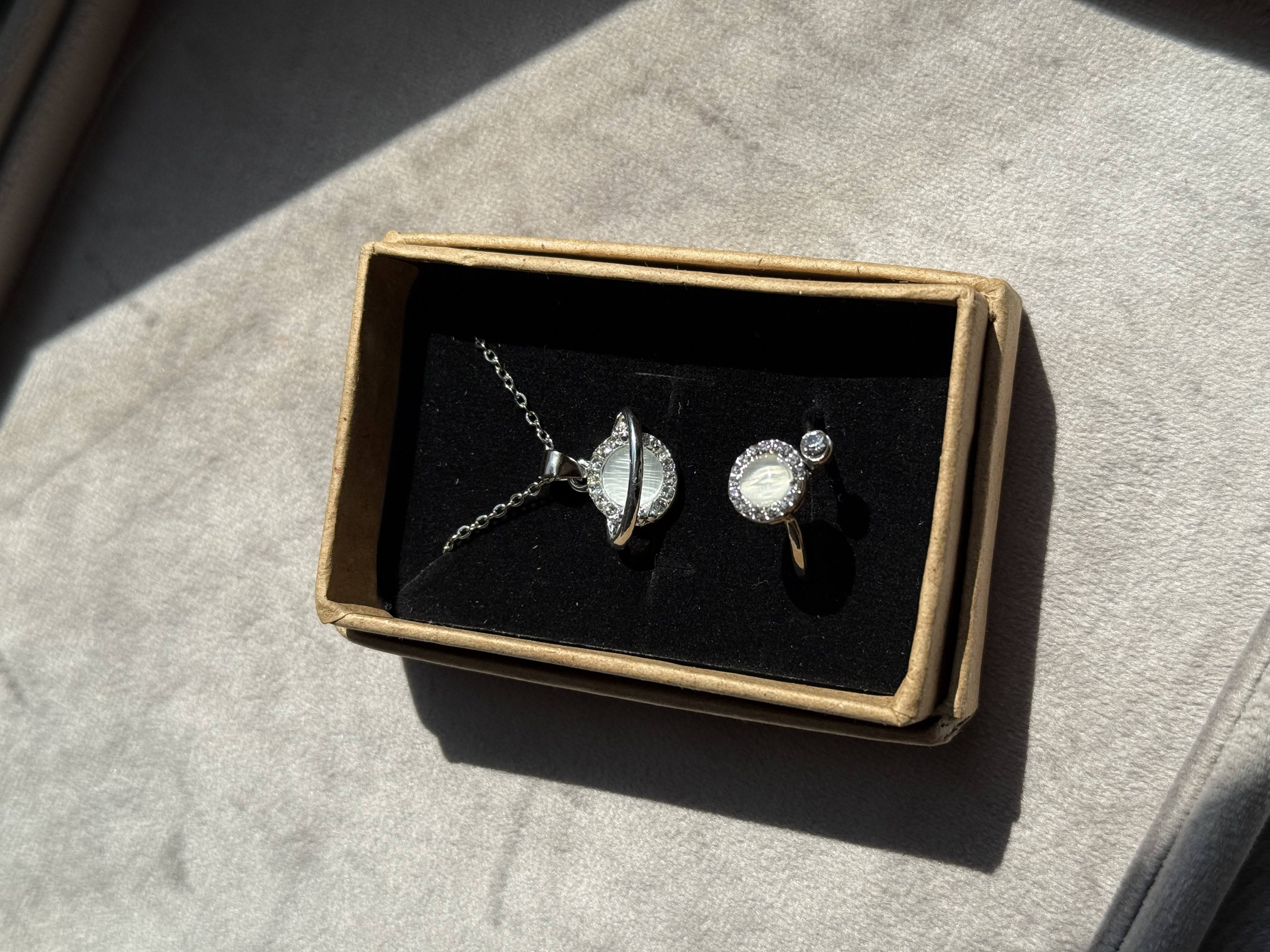 ست انگشتر و گردنبند سنگ ماه ضد استرس کد ۱۱
