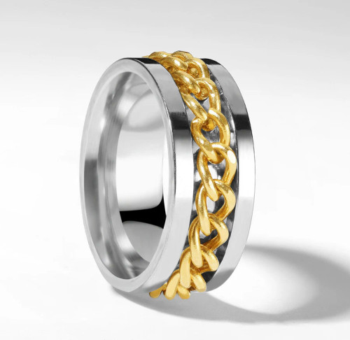 انگشتر ضد استرس مردانه زنجیری طلایی کد ۱۸