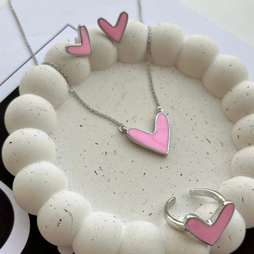 ست قلب صورتی گوشواره گردنبند انگشتر