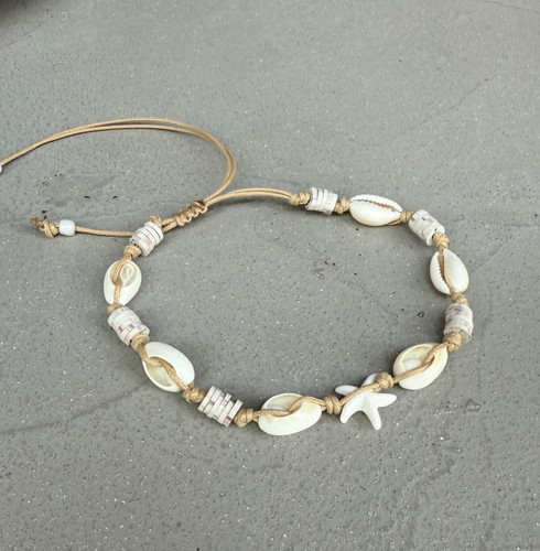 دستبند صدف و ستاره دریایی با نخ چرم کد ۵