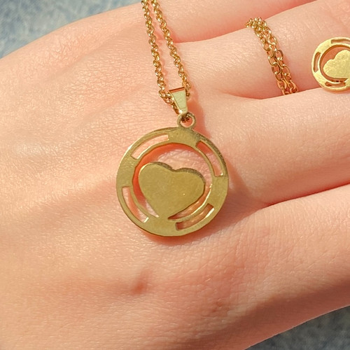 ست گوشواره و گردنبند طلایی قلب کد ۲