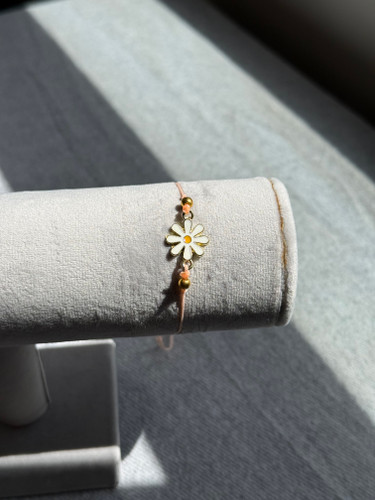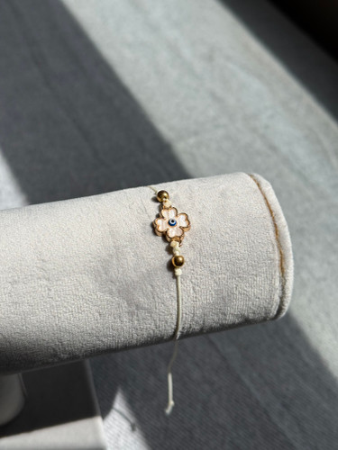 دستبند دستباف پلاک شکوفه سفید کد ۴۰