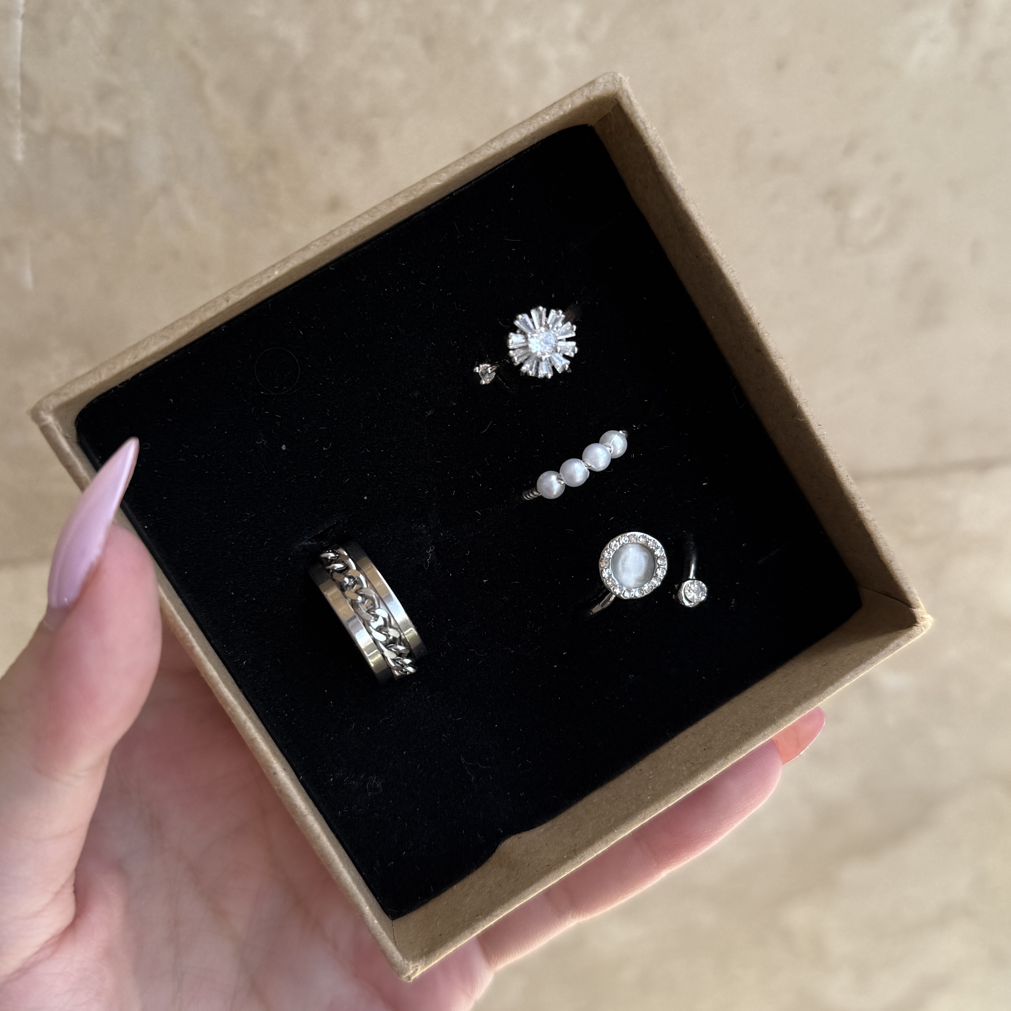 ناموجودپک انگشتر ضد استرس استیل نقره و مروارید