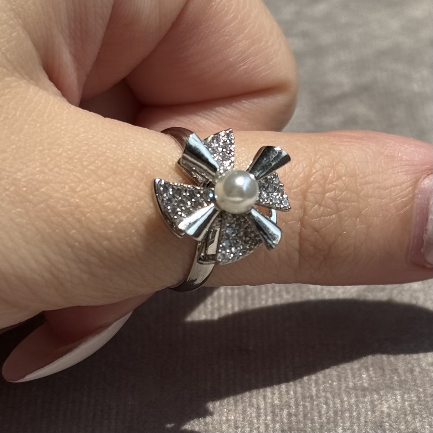 ناموجودپک انگشتر ضد استرس استیل نقره مروارید کد ۲